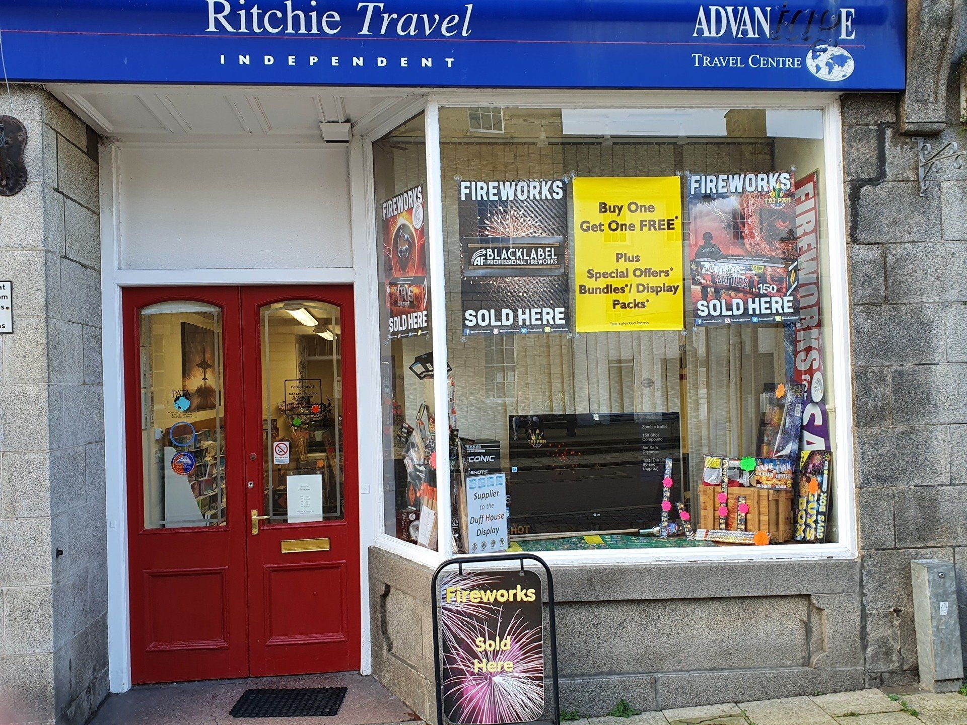 Fireworks Grampian showroom at Ritchie Travel, 47 Low Street, Banff, AB45 1AU Tel 01261 812142 Email sales@fireworksgrampian.co.uk